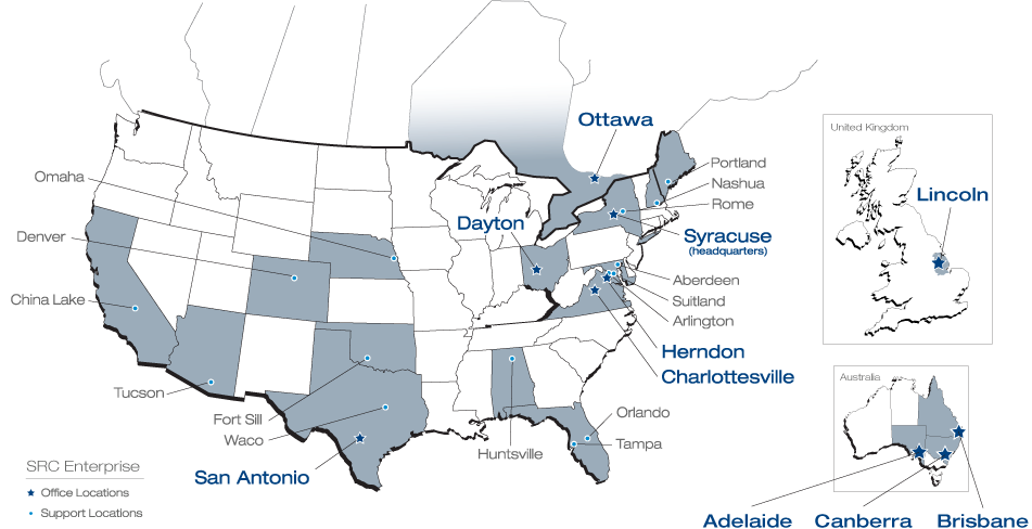 SRC and its family of companies have offices and support locations throughout the United States and around the world.