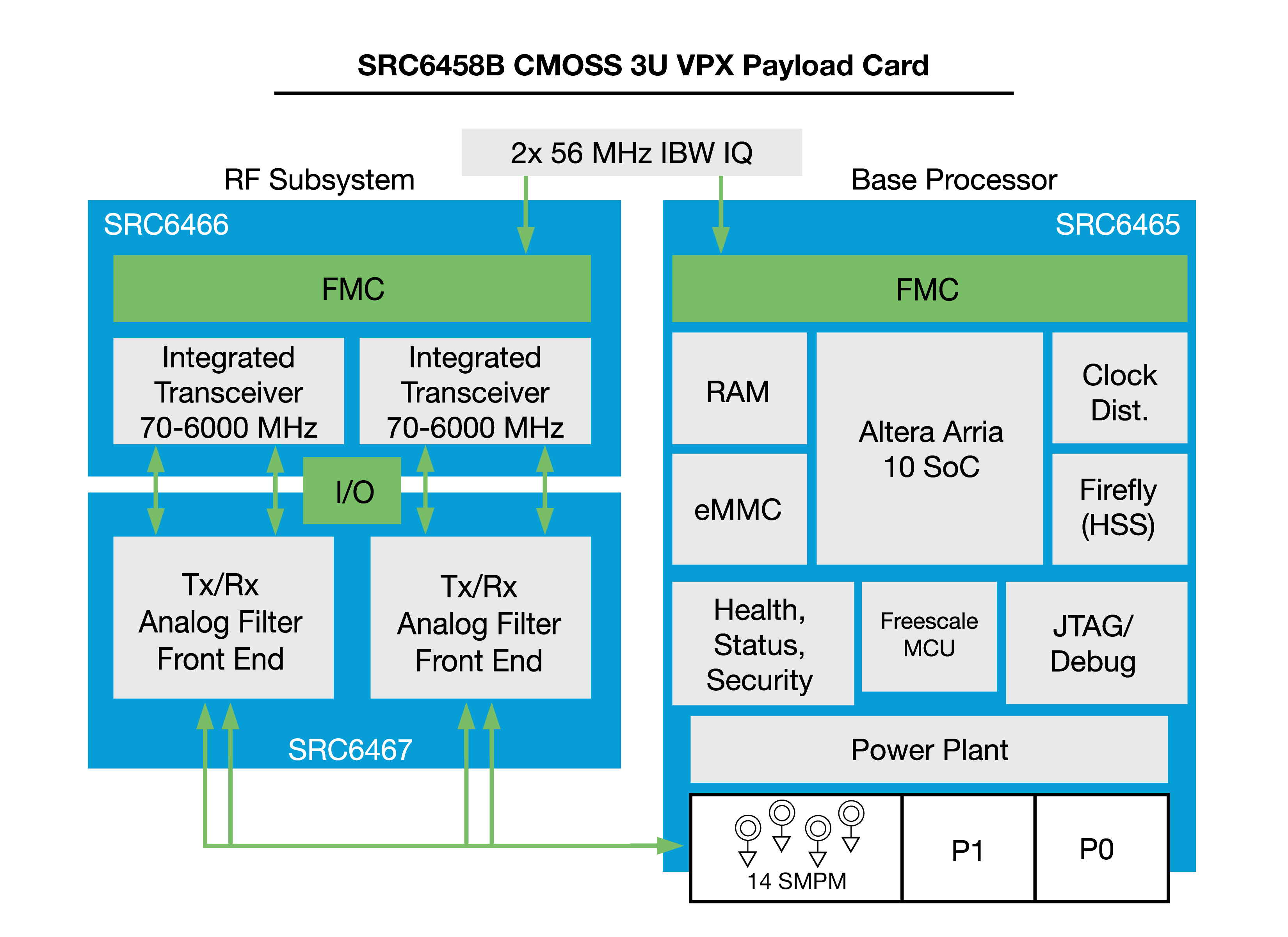 The SRC6458B CMOSS/SOSA-aligned 3U VPX payload card is a 3U OpenVPX payload designed to support the DoD hardware and software convergence initiative. |