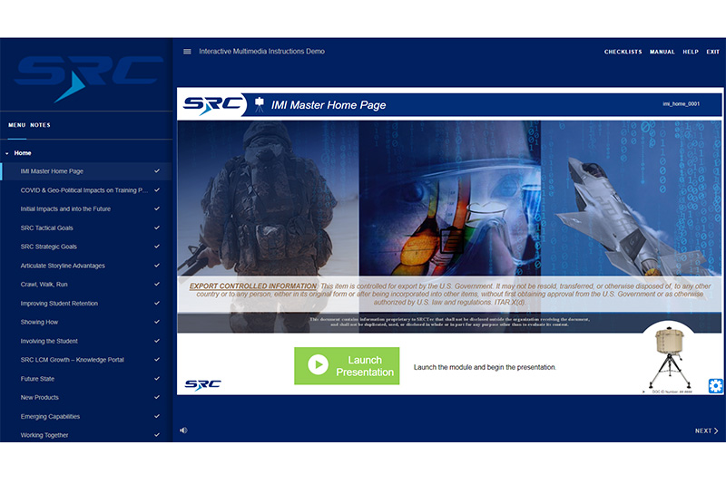 SRCTec provides synchronous and asynchronous training, ranging from initial systems training for new customers to advanced troubleshooting skills for highly experienced users. Our OEM-level training solutions enable customers to get the full operational benefits from their products. All courses are taught by our skilled product support engineers either in-person at the customer’s site, at our facilities in Syracuse, NY, or facilitated remotely across multiple locations. Instructor-led training is designed on a 30/70 split of lecture and hands-on practical exercise activities to give students opportunities to hone their skills and confidence in operating the system and performing preventive and corrective maintenance tasks. For many products, training is also available in SCORM-compliant formats that are compatible with customer Learning Management Systems (LMS). These short courses can serve as refresher training or as just-in-time / on-demand training of basic system skills. For customers desiring advanced simulations as part of their training, SRCTec can create mission specific simulations from the full range of Instructional Design Levels: